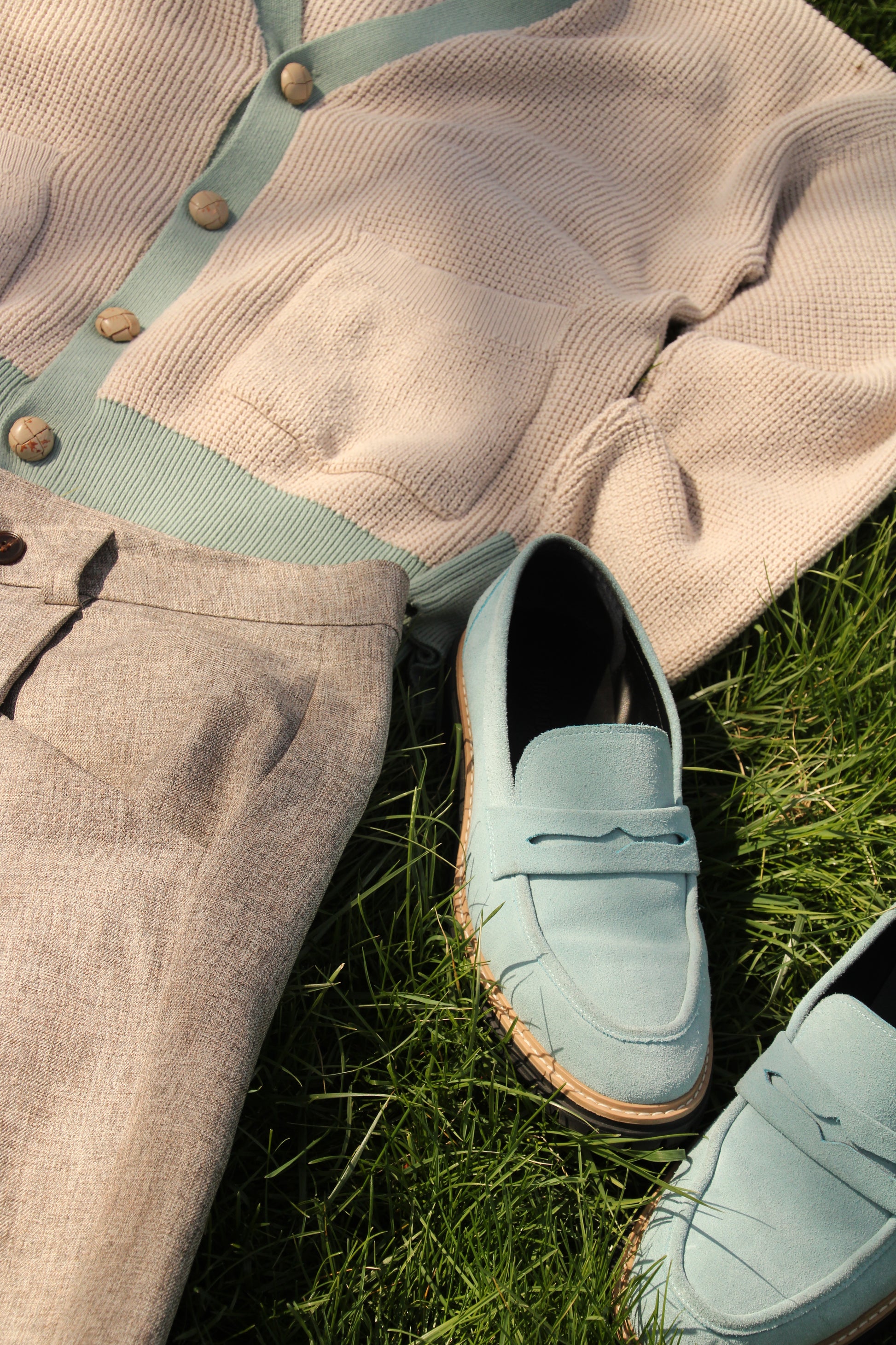 Each piece was designed with the others in mind. The cardigan adds warmth and depth, the trousers introduce flow and silhouette, and the loafers ground the look with a subtle statement. Together, they create something greater than individual garments, a uniform for everyday presence.